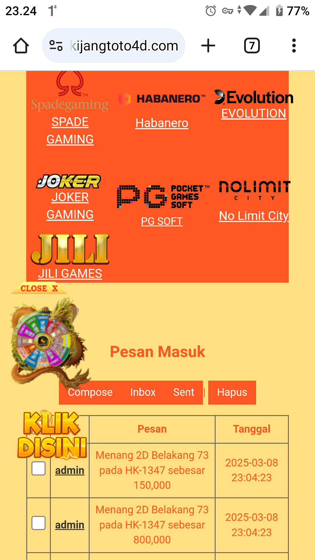Sy juga sering diinbok admin erabet188 tp saya gk mau main disitu, yg aman gacoan88,topwin303,nasa4d,omtogel.depo dan wd jutaan aman prosesny cepat gk sampai 5menit sy selama ini main disitu aj