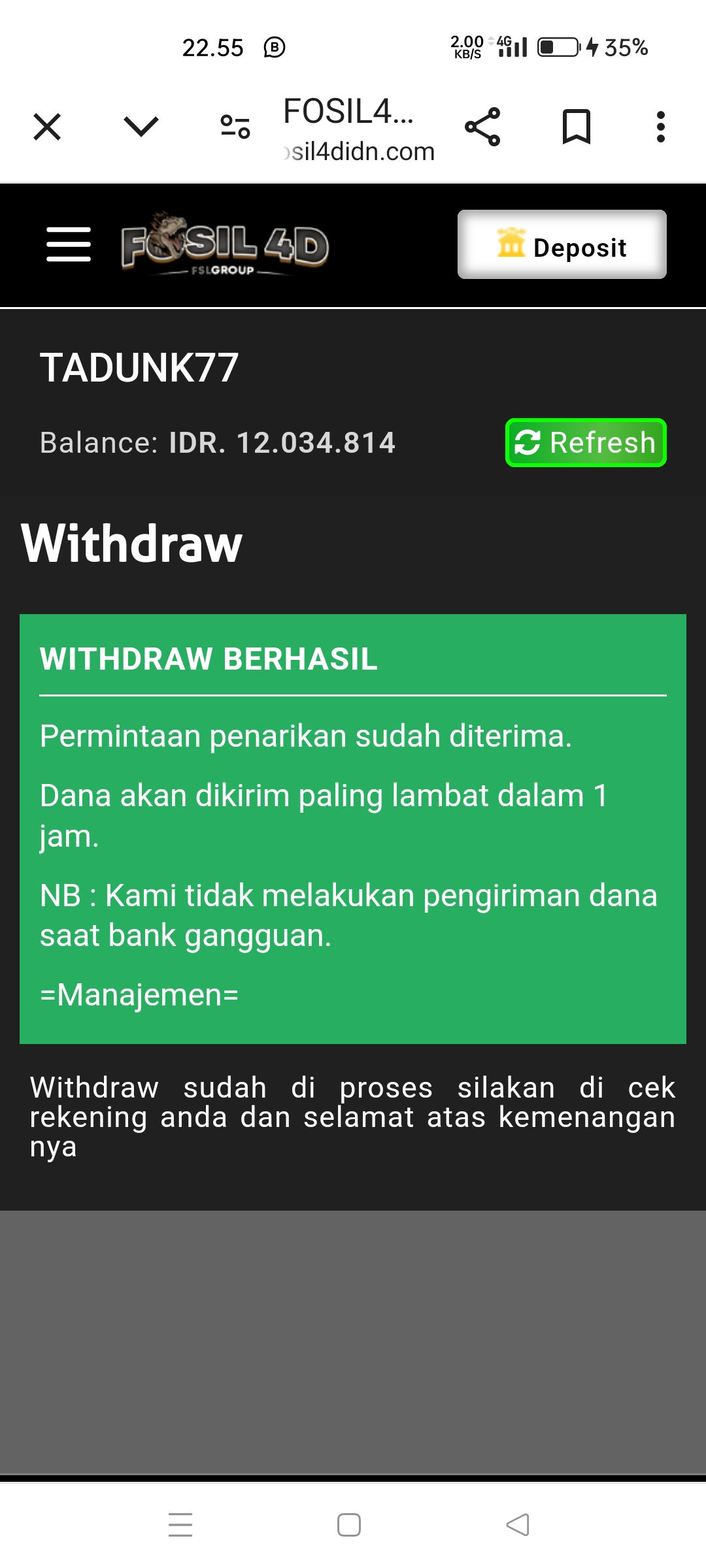 Fosil4d situs penipu sy wd gak di bayar bayar…kemenangan slot 12jt. Akun sy di blok wa sy di blok admin gak ada tanggung jwb nya