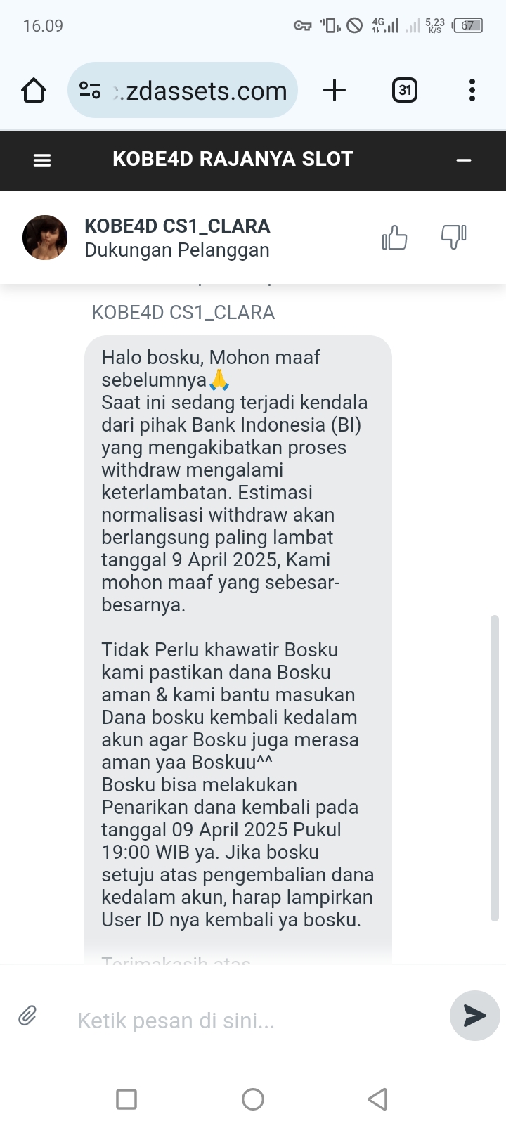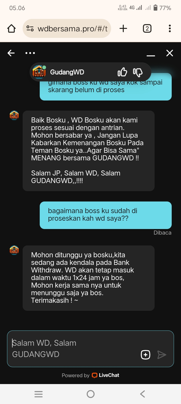 Kobe4D WD nya hari Minggu tgl 6 disuruh nunggu Bi buka tgl 9 padahal WD dikit percobaan