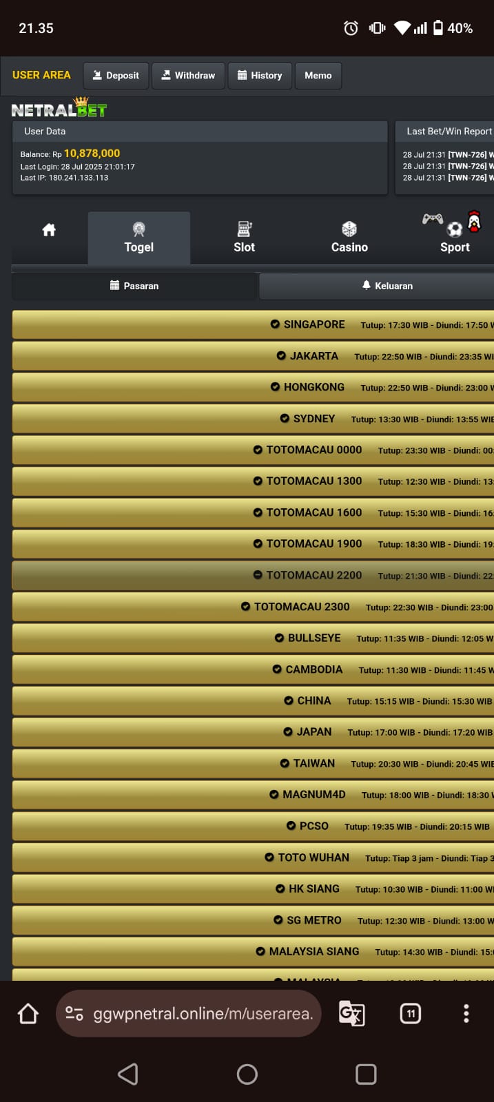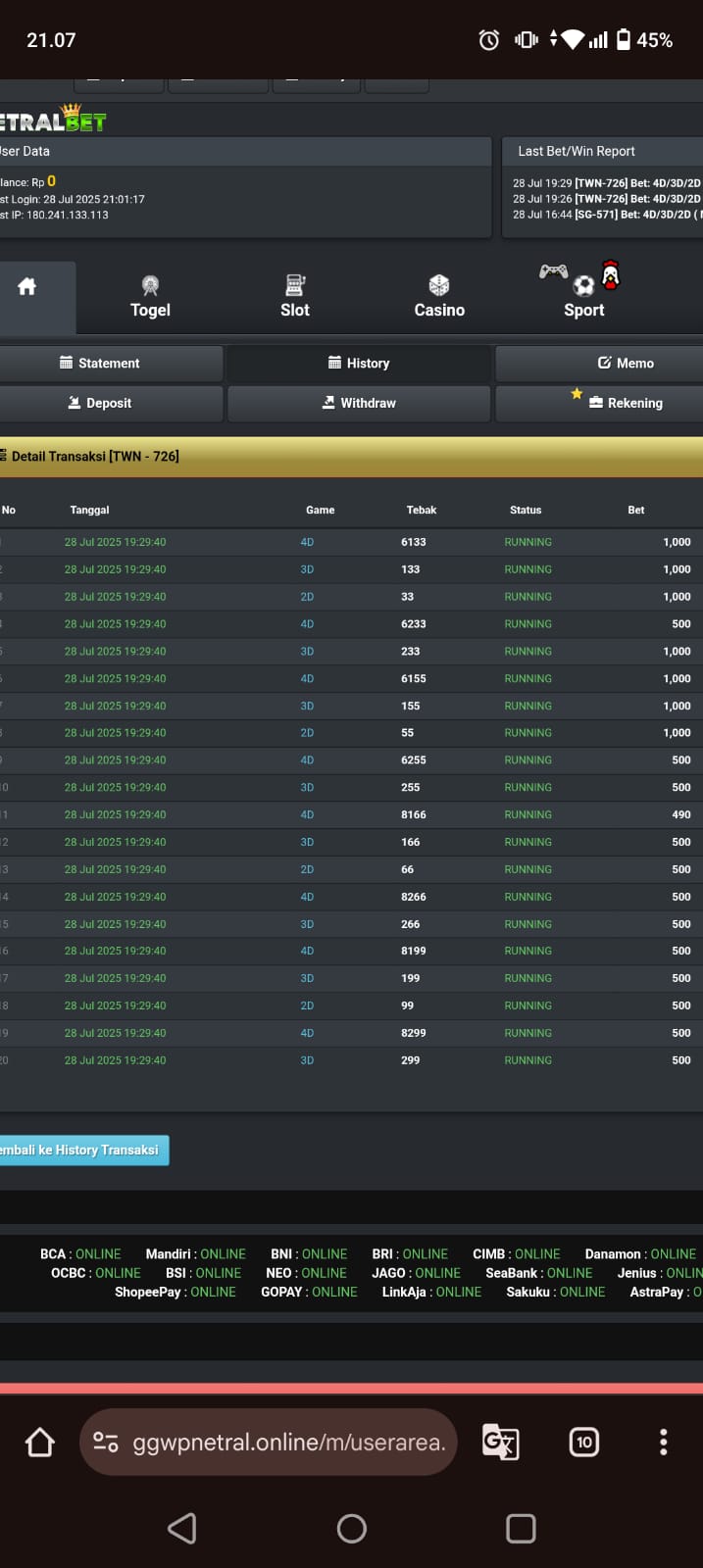 Ga ada Sob, itu bukti kemenangan sudah masuk ke saldo. Namun disaat mau WD nama rek di tukar admin dan wd tidak dilayani sudah di chat langsung diblokir tanpa penjelasan dan alasan.