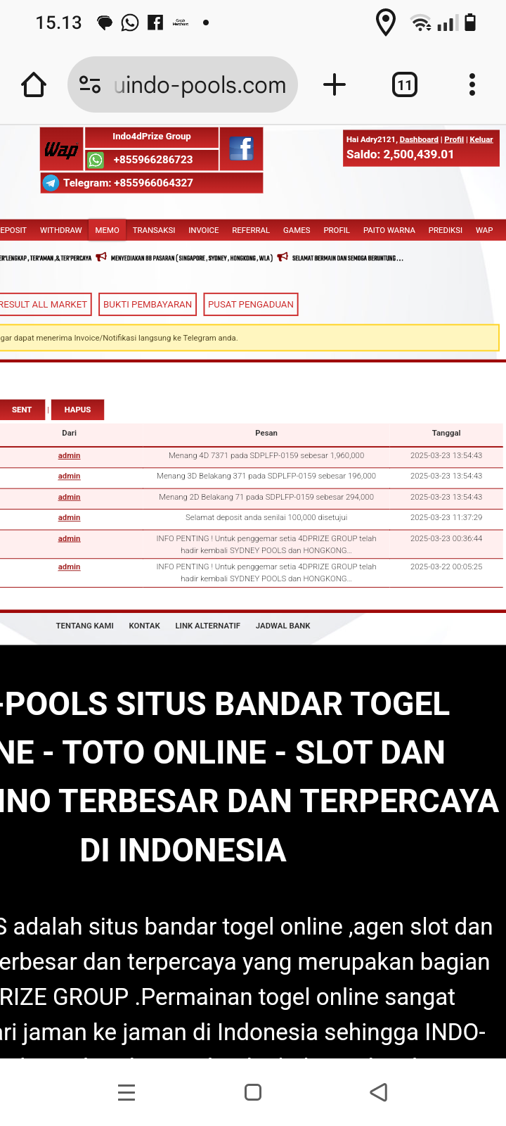 Tidak di bayar saya main di group4dprize Indopools.tolong masukan ke daftar hitam bo. Indopools.katanya ini betingan hantu. Padahal saya terima email bettingan dan invoice juga ada berita kemenangan